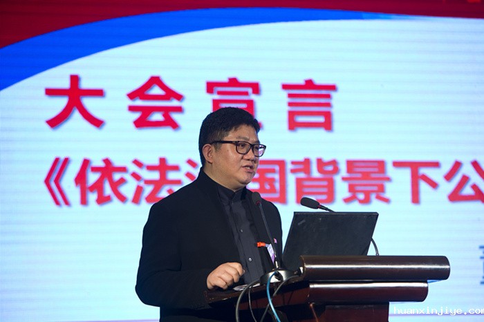 各省、市公共关系协会代表宣读《依法治国背景下公共关系行业自律北京宣言》