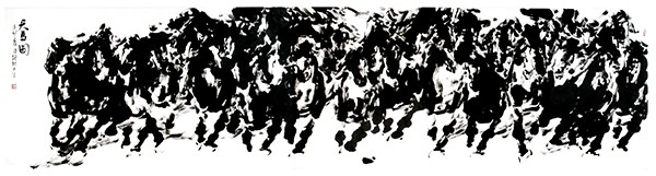 《天马图》以宽9米,高2米的宏篇巨制,采用传统大写意的表现手法,立求表现出华夏民族光辉灿烂的文化和延绵不断的文脉。