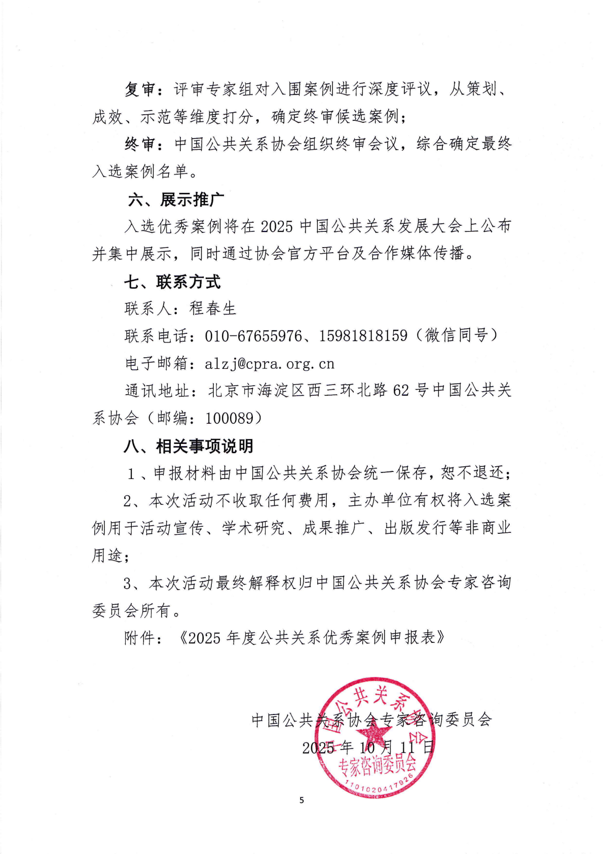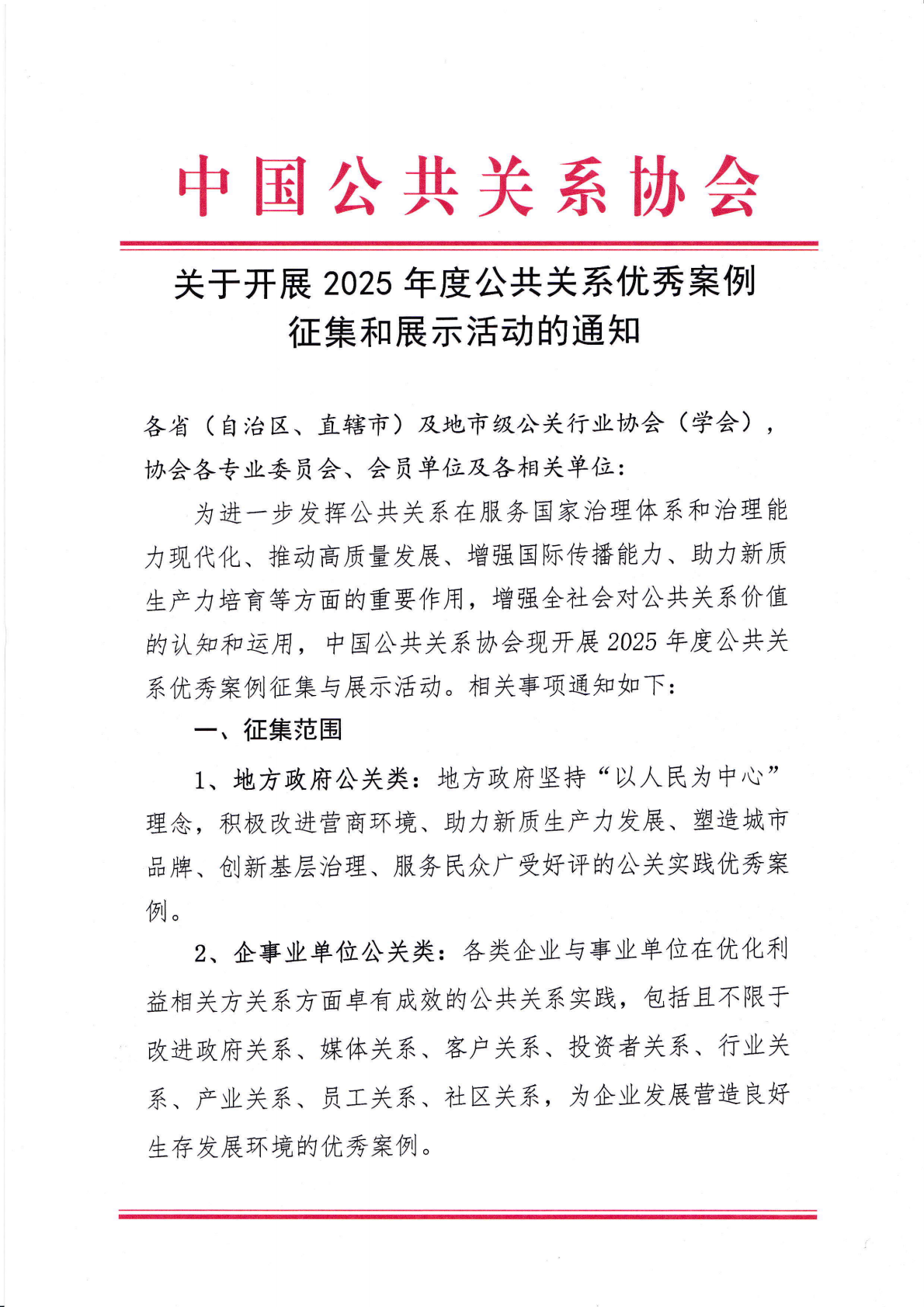 关键词: 关于开展2025年度优秀公共关系案例征集和展示活动的通知