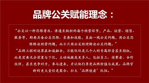 最后,让我们再来温习一遍首席赋能官倡导与实践的“品牌公关赋能”理念完整内容,它已经帮助数十家企业刷新品牌公关战略价值,并且正在影响更多的企业和品牌公关人士: