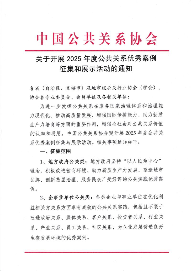 关于开展2025年度公共关系优秀案例征集和展示活动的通知